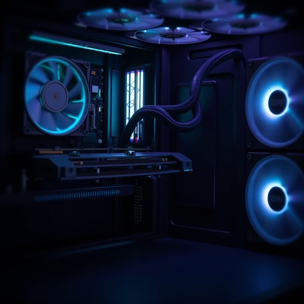 - حلول التبريد: المزيد من بطاقات الرسومات يعني المزيد من الحرارة. يمكن معالجة هذا التحدي بأفضل شكل عبر حلول تبريد فعالة مثل المراوح ذات الأداء العالي أو أنظمة التبريد السائل، مما يضمن تدفق الهواء السليم في الكيس. تمنع إدارة الحرارة الفعالة الانهاك، وتحسن الأداء، وتطيل عمر وحدات معالجة الرسومات.